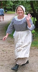 worn during the 1800s. She is a seamstress who sews historic clothing and has